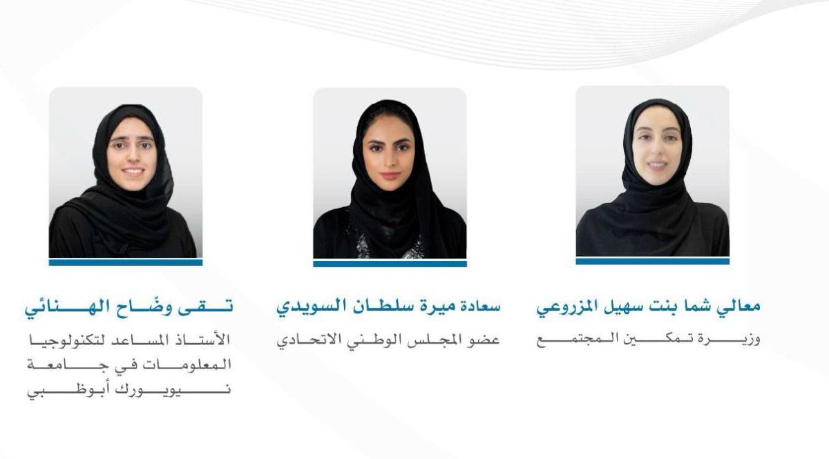 معالي شما بنت سهيل المزروعي، التي تم تعيينها وزيرة تمكين المجتمع في عام 2024، حازت على إشادة دولية بفضل إنجازاتها المتنوعة في العمل الحكومي والسياسي، بينما تسهم سعادة ميرة سلطان السويدي بدورها البارز في تعزيز مكانة أبوظبي كمركز عالمي للتكنولوجيا وريادة الأعمال. أما تقى وضاح الهنائي، فقد أظهرت إبداعها في مجال تكنولوجيا المعلومات، محققة نجاحات كبيرة في البحث العلمي.