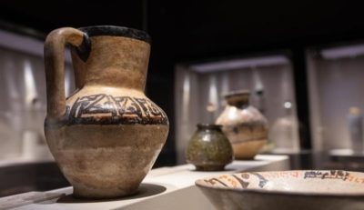 🔸 الجناح الأول يروي قصة تطوّر صناعة الخزف والزجاج منذ القرن الأول وحتى القرن العاشر الهجري، من خلال عرض نماذج متقنة من الفخار، وهي حرفة قديمة طوّرها المسلمون بأساليب فنية متقنة.