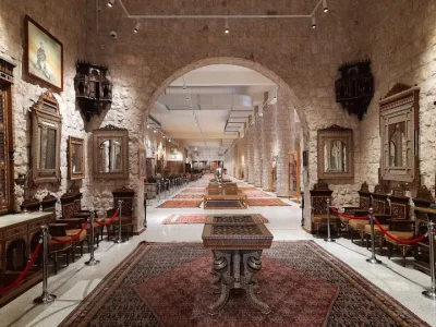 بيت دمشقي أعيد بناؤه بالكامل داخل المتحف، يعكس روعة الحِرف الشامية.