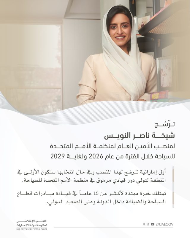 شيخة النويس من الإمارات ترشح لمنصب أمين عام منظمة الأمم المتحدة للسياحة